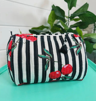 Cherry Quilted Cosmetic Bag