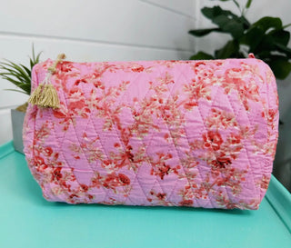 Floral Quilted Cosmetic Bag
