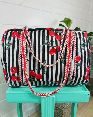 Cherry Quilted Weekender Bag