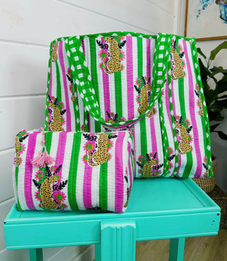 Jaguar Striped Cosmetic Bag